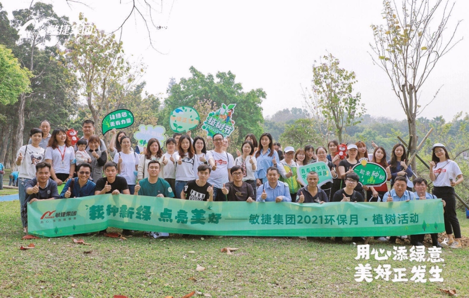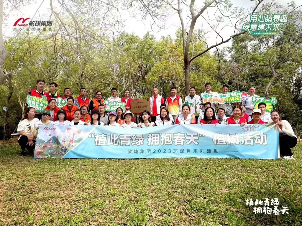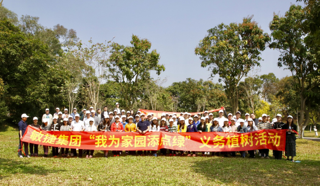 2019年3月,敏捷集团超百名党员、员工志愿者前往大夫山森林公园开展“我为家园添点绿”主题义务植树活动,以党建红助力生态绿;2021年3月,以“栽种新绿,点亮美好”为主题的植树活动在大夫山栽植下30株紫荆花树苗,同时,为公园清除白色污染,用实际行动保护大夫山的生态环境;2022年3月,敏捷集团发起云植树活动,共吸引了近千人线上参与,让生态文明意识更加深入人心;2023年3月,敏捷集团在大夫山森林公园如期举行“植此青绿 拥抱春天”植树活动,为建设绿色家园贡献敏捷力量,同时,在全国各地30余个敏捷社区开展“亲邻自然 活力WE来”主题活动,通过社区植树等活动普及环保知识。