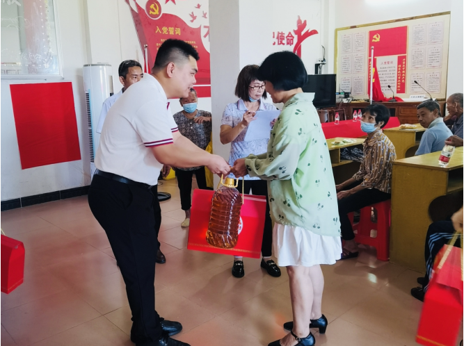 敏捷集团阳江党支部书记、粤西公司副总经理李丰勇送上祝福和慰问品