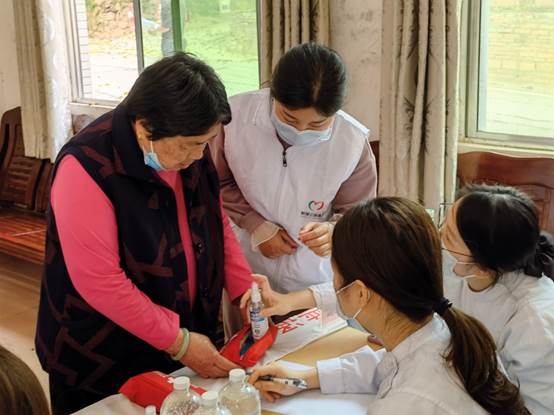 万物复苏,春光明媚。前来咨询就诊的村民络绎不绝,问诊、检查、诊断、宣教等工作有条不紊的进行。志愿者们热情接待每一位前来咨询的村民,引导他们有序就诊,并发放医学健康手册。现场医务人员耐心询问村民的身体状况,提供测量血压、血糖检测、X光胸透等多项医疗健康服务,并赠送防疫包和药品,指导村民健康饮食、合理用药。