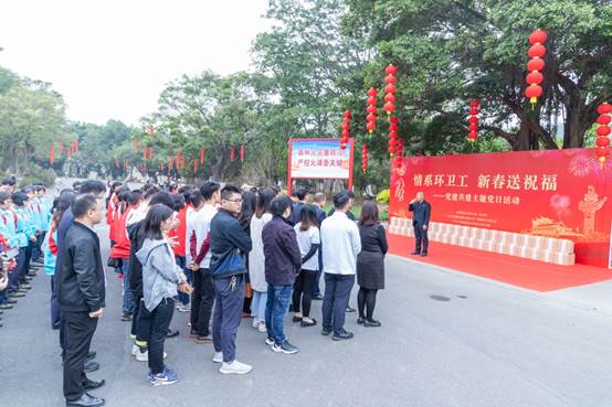 随后,敏捷党总支部联合党建共建单位番禺区教育局机关第一党支部、中国银行广州番禺支行党委在大夫山森林公园开展“情系环卫工 新春送祝福”结对共建主题党日活动。