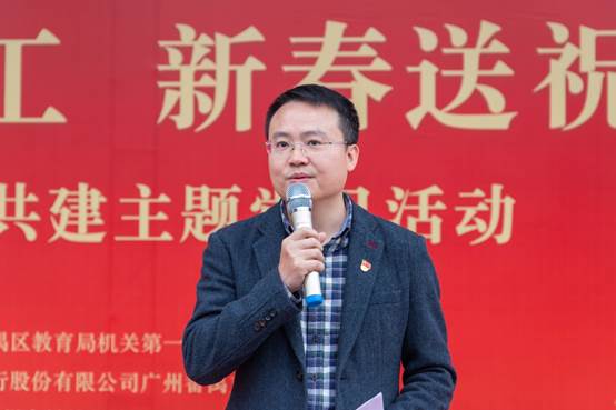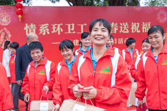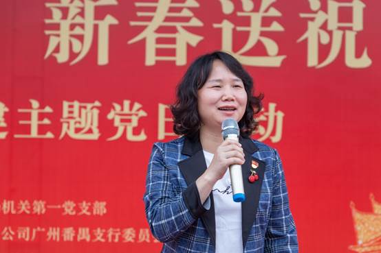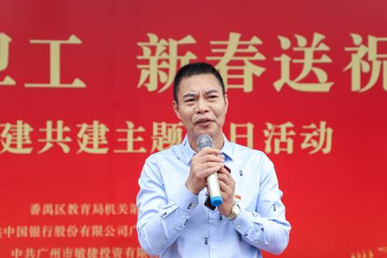 敏捷党总支部书记、集团副总裁黄伟强,中国银行番禺支行副行长何景斌,番禺区教育局党组成员、副局长曾敏先后发言,对环卫工的辛勤付出表示感谢,并祝福大家新春快乐、万事如意。