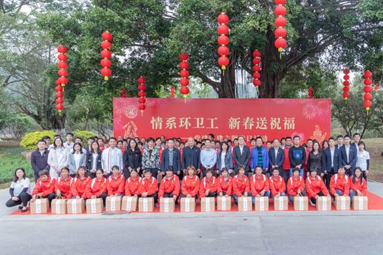 1月16日,广州市敏捷投资有限公司党总支部在广州市番禺区钟村文化广场、大夫山森林公园开展慰问环卫工系列活动,向环卫工送去新春祝福和春节慰问品。
