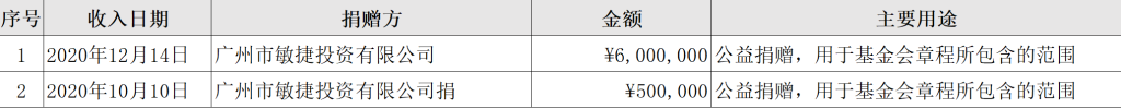 根据基金会管理要求,现将本基金会2020年度大额捐赠收入公示如下: