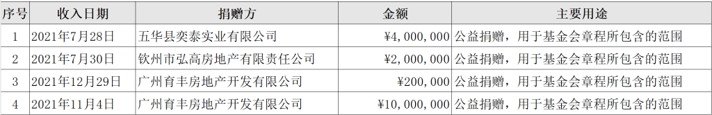 根据基金会管理要求,现将本基金会2021年度大额捐赠收入公示如下: